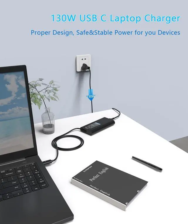 Safety: Our 130W USB C Chrager has passed FCC/CE/RoHS certification. It combines high-quality fireproof materials and built-in smart chips to create multiple reliable protections including Over-Charge Protection/Over-Voltage Protection/Over-Temperature Protection/Over-Current Protection/Short-Circuit Protection/Lightning Protection to ensure the safety of users a