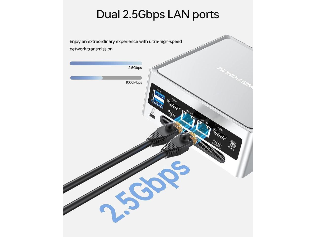 - [(Dual LAN 2.5G)] MINISFORUM NAB6 Lite small pc with two 2.5 Gigabit Ethernet(Intel i226v) ports provides more applications, such as firewalls, multichannel aggregation, file storage servers, etc. At the same time, dual-band Wi-Fi6, BT5.2 with more substantial resisting disturbance and more stable wireless signal. No matter how complicated your environment, NAB6 Lite mini desktop computers can provide a relatively stable and smooth network.