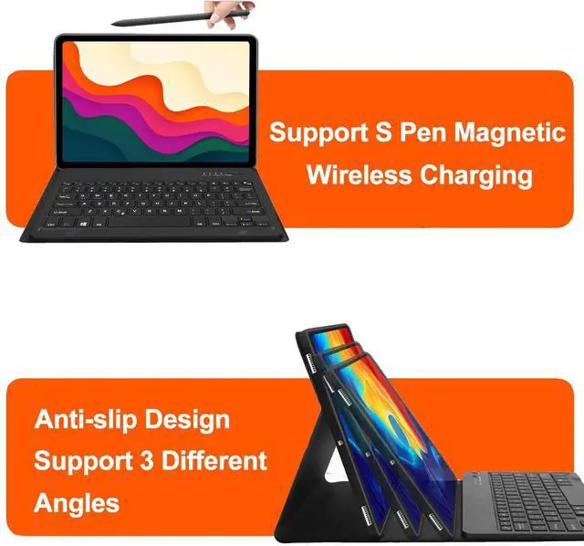 [(Smart Protection with Multi-View Angles and Pencil Holder)] The high quality Samsung Galaxy S8 plus case is made of premium vegan exterior composition leather and soft anti-slip lining, a protective keyboard cover gives your tablet 360degfront and back protection from accidental scratches. And tab S8 plus case has multiple viewing angles and S Pen holder. You can choose your optimal angle to use your tab and don't worry about S Pen get lost or in the way.