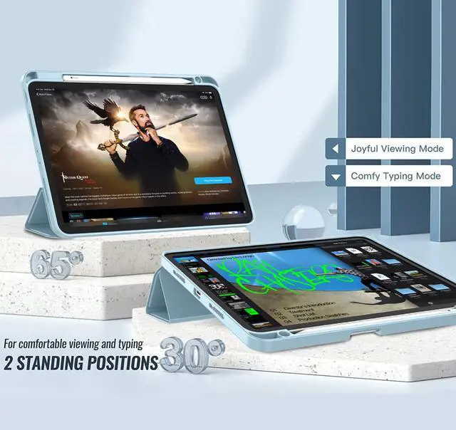 [Different Viewing Angles] Designed with dual standing positions for users to adjust the iPad into different angles.