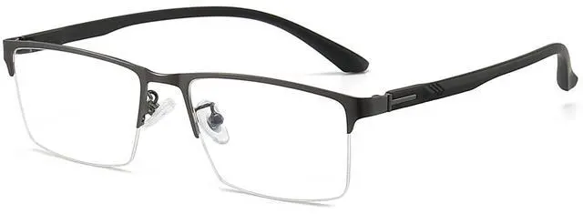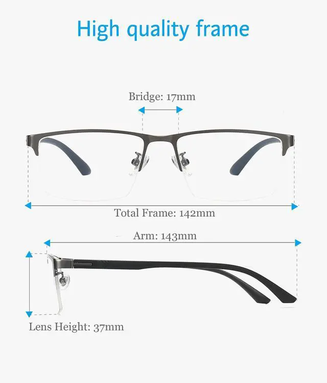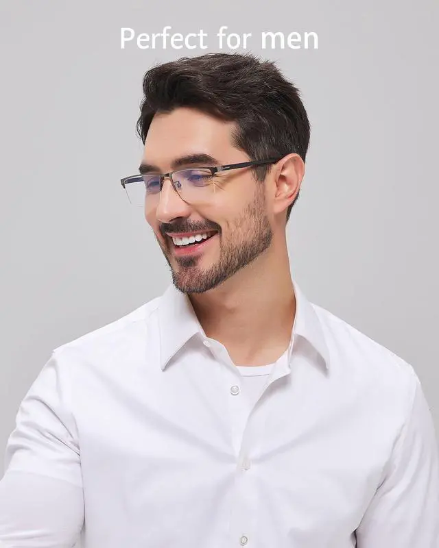 ANRRI Blue Light Glasses for Men Semi Rimless Glasses Lightweight Metal Frame Computer Gaming UV Blocking Grey Eyewear
