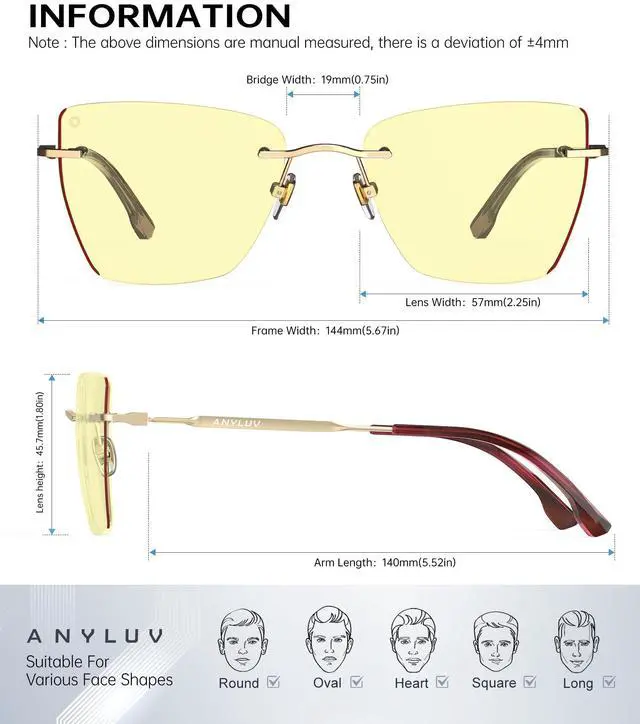 SHIELD YOUR EYES IN STYLE: ANYLUV blue light filtering technology blocks harmful digital rays (380-457nm) while maintaining true-color vision - say goodbye to screen-induced headaches and restless nights!