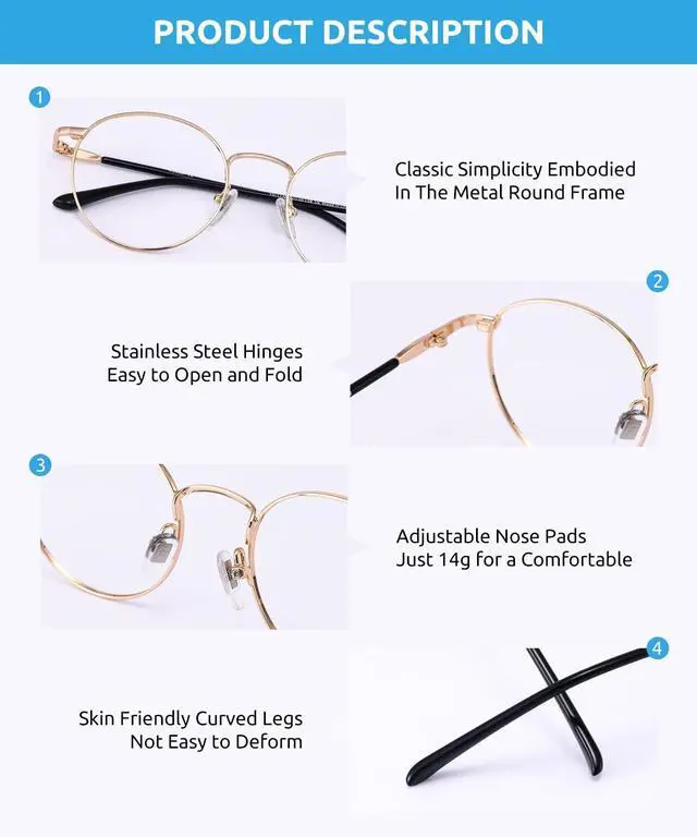 • HIGH-QUALITY FRAME - Lightweight metal frame for less pressure on your nose and comfortable long-term wearing. Retro frame design keeps you looking professional and stylish while working or playing video games