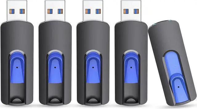 JUANWE 64GB Flash Drive 5 Pack 3.0 USB Jump Drive Retractable Slide Memory Sticks for Computers Thumb Drive Bulk USB Data Storage Pen Drive Blue