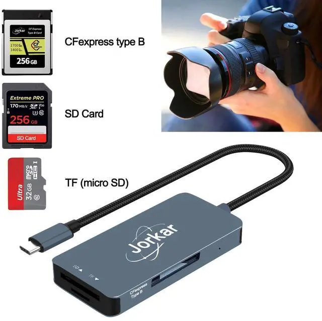 Jorkar CFexpress Type B Card Reader 10Gbps, 3 in 1 Type-B & SD & Micro SD TF Card Reader, USB C for CFE Type B Camera Memery Card Reader for Nikon Canon Panasonic (Not for XQD Card)