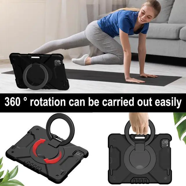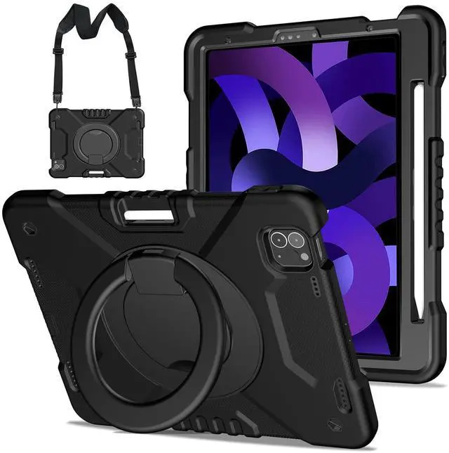 SCSVPN Case for iPad Air 5th/4th Generation 10.9'', iPad Pro 11 Inch Case Kids 4th/3rd/2nd/1st Gen 2022 2021 2020 2018 w/Pencil Holder-Stand-Handle-Shoulder Strap, Shockproof Protective Cover, Black