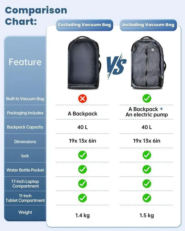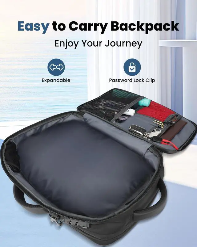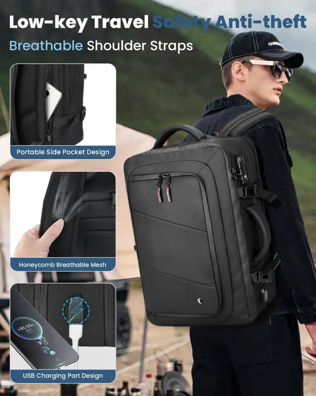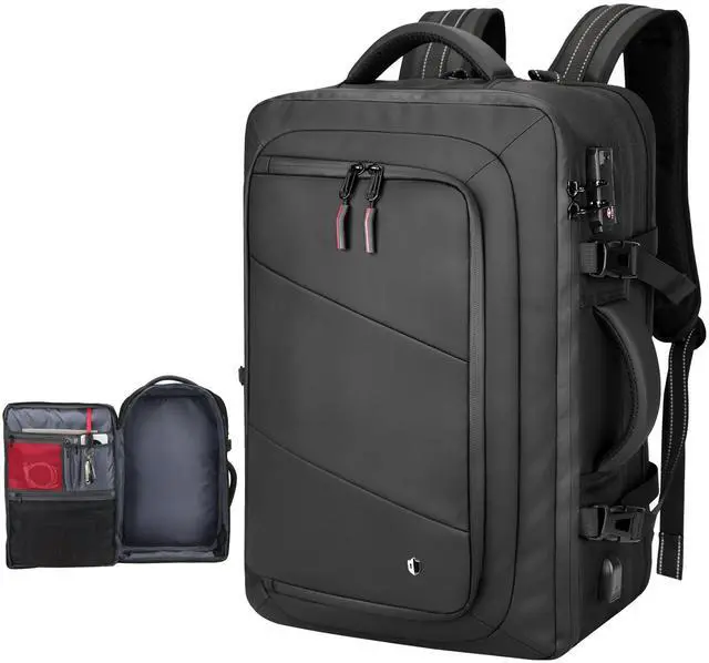 SWICKY 50L Carry on Backpack, Laptop Bag, Expandable Backpack for Airplane, Water Resistant, USB Port, TSA Lock for Women & Men, Ideal for Travel Business, Work- No Pump or Vacuum Bag Included
