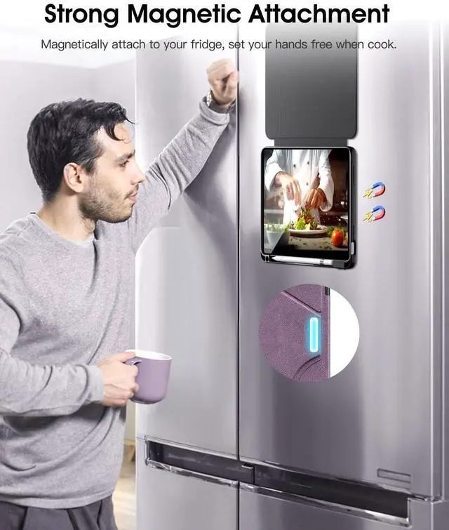Strong Magnetic Attachment: The strong magnetic plate on the back of this iPad a16 case can firmly attach it to refrigerator or other metal, making it easy to free your hands when cooking