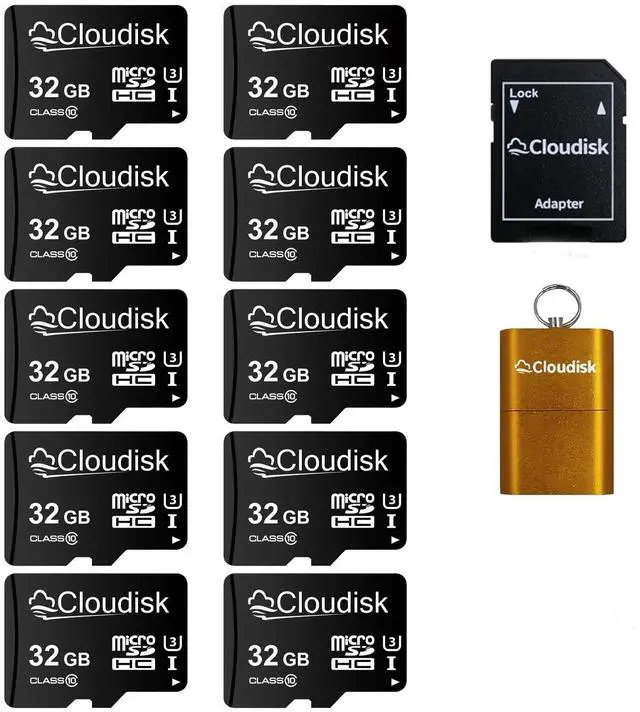 Package included: 10 pieces Micro SD cards, 1 SD adapter, and 1 card reader