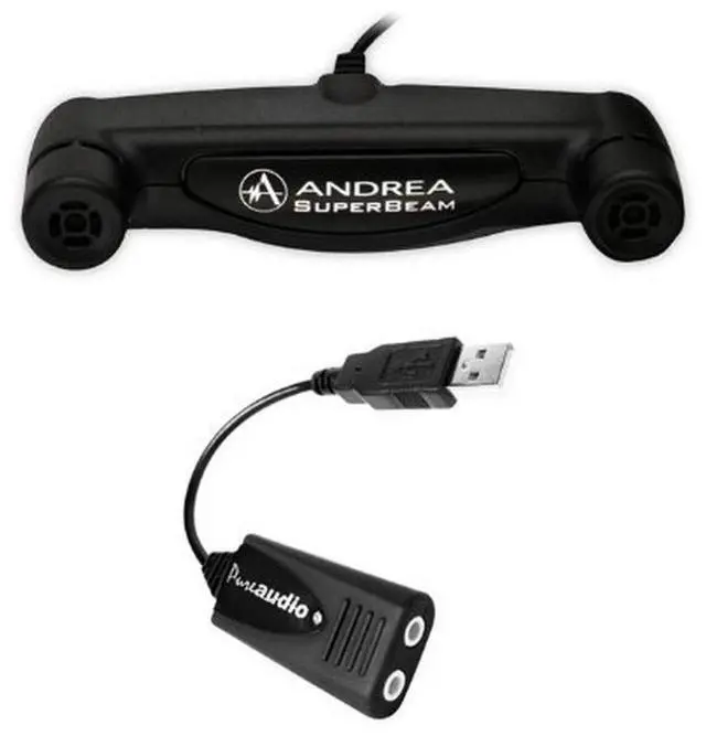 External Digital Sound Card and Superbeam Array Microphone Bundle, SKU C1-1021450-50. Your headset, microphone or speakers will perform only as good as the sound card or integrated audio system that you plug into. Most laptops and PCs today have audio systems built in and it is often placed close to noisy components like the power supply or high frequency processors. In addition, PC's may be used in high noise level environments which can affect the performance of applications, such as those that use speech input. Andrea's USB-SA utilizes high quality digital circuitry.