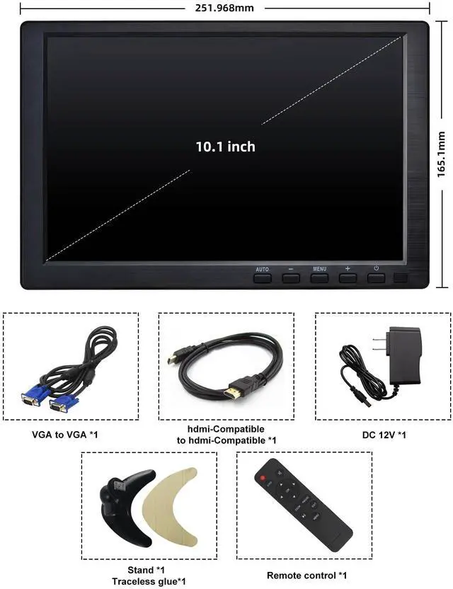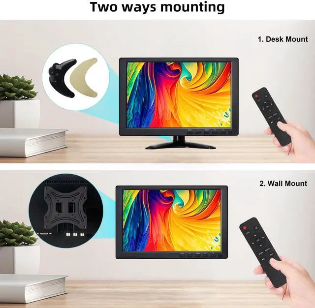 CCTV Monitor, 10.1 Inch Small Monitor 1024 * 600 IPS Portable Monitor with Stand Built-in Speakers Housing Screen Remote Control DMI/VGA/BNC/USB Input for Security Camera Xbox PC