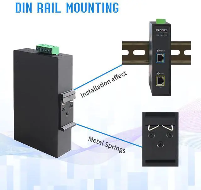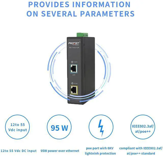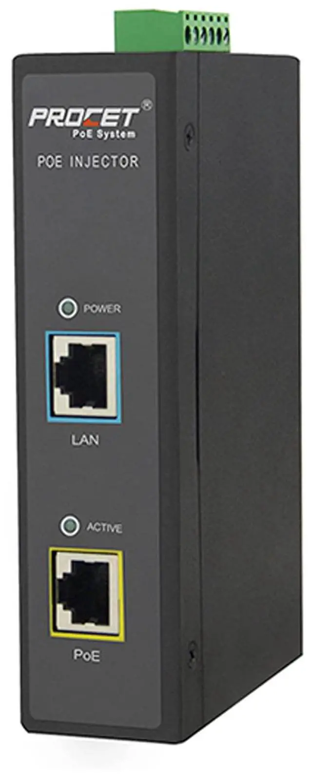 PROCET PoE++ 95W PoE Injector DIN Rail Industrial PoE Power Injector High Power PoE, 6KV Surge Protection, Wide Working Temperature -40 to 149, PT-PSE105GWH-E