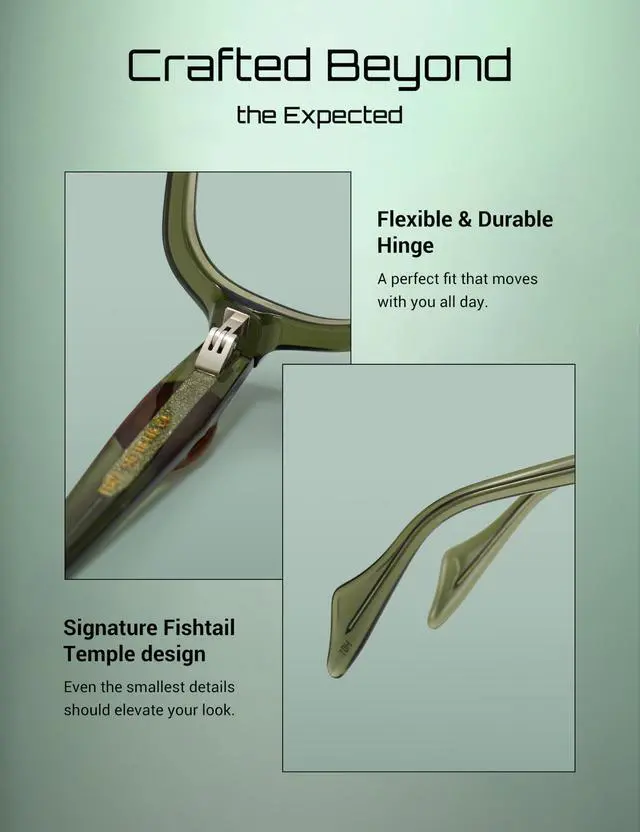 Ergonomic Lightweight Build - Premium Japanese acetate ensures featherlight comfort and a secure, all-day fit,
