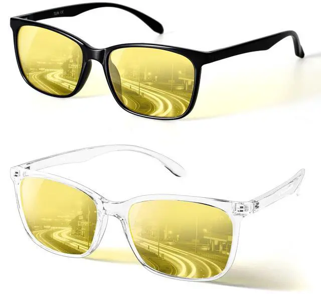 Night Vision Yellow Lens - Night vision glasses utilize anti-glare technology to effectively reduce weak or strong light interference while driving, enhance contrast, and provide clear and stable vision. You can be free all the time in the night without worrying about the of damage to your eyes from glare. ^^ Premium Materials - Night driving glasses feature a durable, shatterproof frame, anti-scratch lenses, integrated nose pad, and a sturdy flexible internal metal hinge structure for long-lasting wear. Every detail ensures a perfect wearing experience, offering all-day comfort. ^^ Multi Scenario Adaptation - Anti glare glasses night driving can provides clearer vision even in low-light conditions such as foggy, overcast, rainy, night-time, making it an ideal choice for night driving, motorcycle riding, cycling, running, walking, fishing, and other outdoor activities.