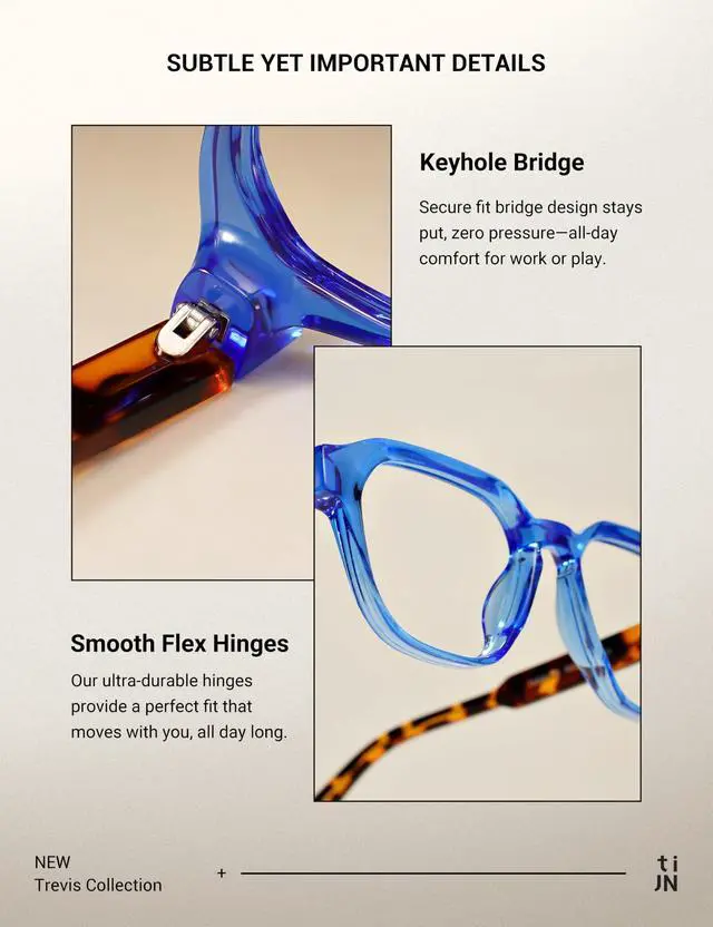 Comfort & Durability: Crafted with flexible TR-90 memory plastic, these retro-chic glasses weigh under 15g for all-day wear. Bend-resistant hinges and spring-loaded temples withstand daily use while keeping pressure off your temples. ^^ Blue Light Defense +