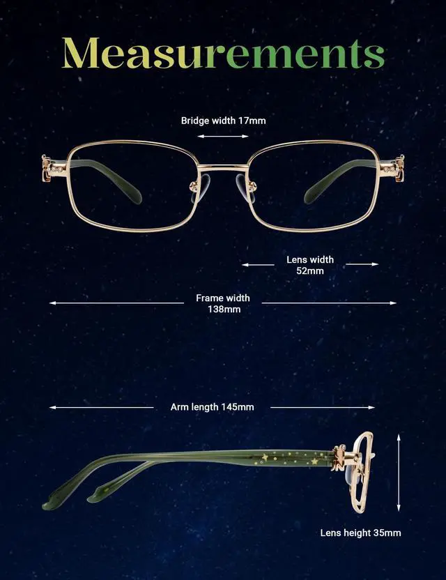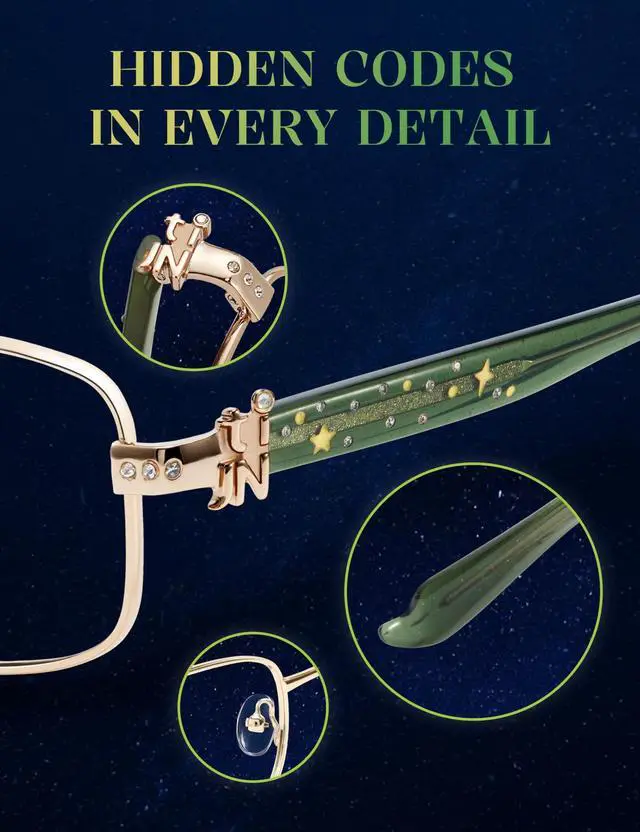 This combination creates a dreamy, sophisticated look perfect for enhancing any cute or mystical aesthetic. ^^ Night Scene & Selfie Ready Designed to create dreamy and photogenic effects, these anime girl eye glasses enhance your aesthetic with their soft metallic shine and elegant silhouette, making night photos and selfies appear more magical. ^^ Lightweight for All-Day Comfort Crafted with a lightweight frame, these city pop blue light blocking glasses are comfortable for long-term wear, whether youre at anime conventions, cosplay meet-ups, or daily city adventures. ^^ Your Secret Code - Four distinct styles, each with a unique color, zircon accent, and star engraving.