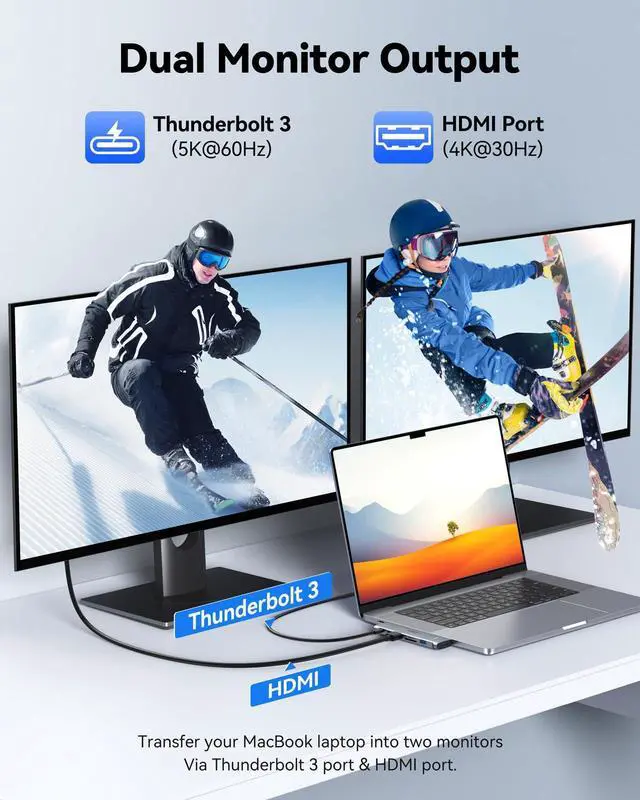 To take full advantage of USB-C and DP alt mode, the adapter converts the video and data capabilities of your MacBook's 2 USB-C ports into 7 individual ports. You can save money and use the macbook adapter with your existing peripherals, and with its built-in cable, there's no need to carry around a separate host cable. Your desktop will become neat, allowing you to stay away from messy.