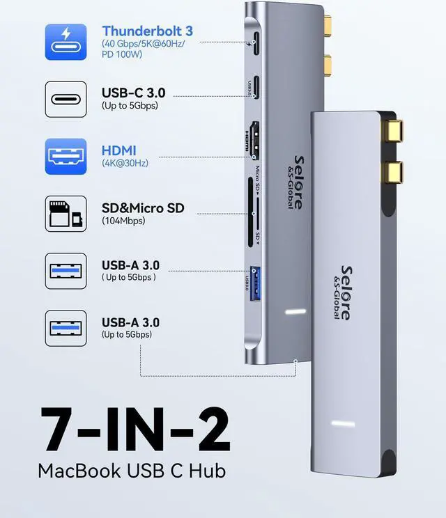 Selore&S-Global Macbook Pro Air USB C Adapter features an integrated and easy-to-use USB Type-C connector.