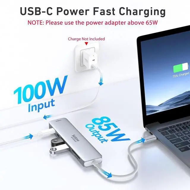 USB C Data & 100W PD: Mac HDMI Adapter comes with 2*USB C port which easily