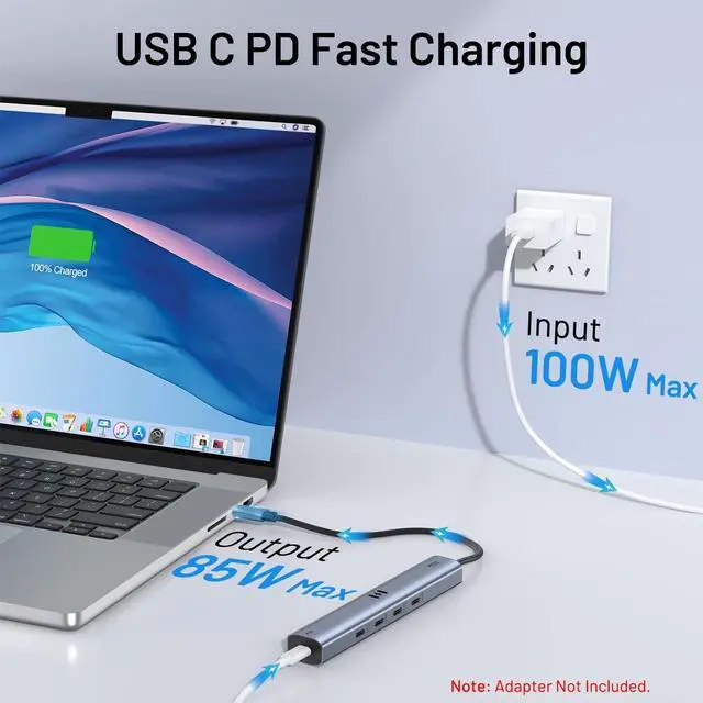 Hub Video Output: Enjoy ultra-clear video quality with the 4K@60Hz display via the Selore Multiport Adapter. This USB C Video Hub is perfect for streaming, presentations, or connecting to external monitors. (The product needs a full-featured USB-C port, Thunderbolt 3/4, USB4 port. The specifications of the monitor determine whether the interface used supports 4K. ) ^^ 10Gbps USB C Hub Fast Data Transfer: With 10Gbps data transfer usb c ports, offers high speed file transfers and backups. Move 1GB files in 1 second. Whether you're working on large files, gaming, this usb c hub ensures you can handle it all with ease. (The product needs a supports PD protocol PD charger when connecting video cameras. ) ^^ 100W PD-IN Power Delivery ChargingUSB C charging hub charge your laptop with 100W PD-IN Power Delivery and enjoy up to 85W of continuous power for fast and safe charging. USB C to USB C Hub ensures your laptop stays powered during heavy use.