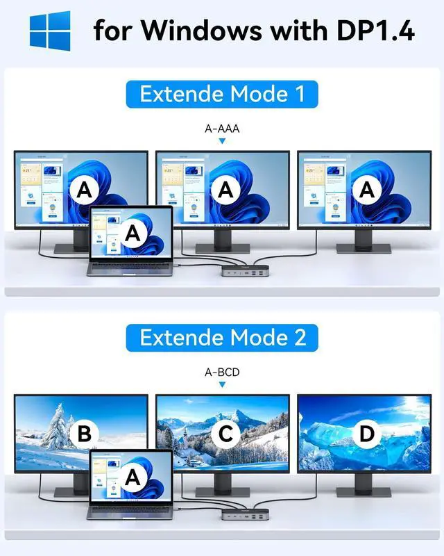 Attention: On Mac devices, ONLY Mirror Mode, CAN NOT extend two different Screen, due to Mac OS limitation ^^ USB C Dock with USB C to USB C CableThis triple 4K display docking station for multiple monitors comes with a original usb c to usb c cable that provides powerful battery charging, fast data transfer and 4K video output, 1000Mbps Ethernet. Makes your life and work convenient and simple.