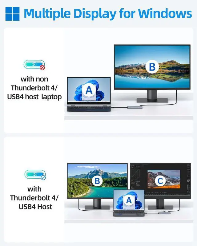 note: MacOS DO NOT SUPPORT MST. DP Alt Mode USB C Hub with Dual Video Support MST and SST dual display for most usb c monitors. FOR Thunderbolt 4/USB 4 Laptop, the USB C to USB C hub dual monitor put will always be 4K/60hz. ^^ 5 IN 1