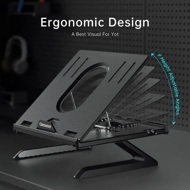 Multifunctional Foldable Laptop Stand: Patented Computer Stand has two foldable foot frame, two foots can be as a display height bracket, also can be used for storage keyboard, mouse and books; On this stand's back designed with two foldable phone holders to place the mobile phone, good desktop organizer for you ^^ 9 Adjustable Levels of