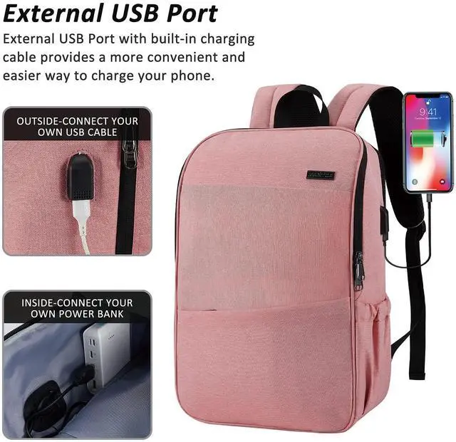 Creative USB Design with Detachable Cable&Inside Power Bank Pocket --- With built in USB charger outside and built in charging cable inside the book bag, you can charge your phone conveniently without opening up the computer backpack. Detachable Cable inside convenient for cleaning the back pack and Inside Side Pocket is design for prevent your Power Bank moving around and same space.(Power Bank Not included)