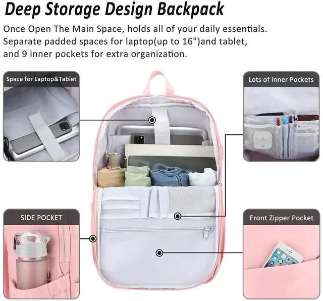 Deep Storage Backpack for School,Travel and Work --- Open the main space, you can store your daily essentials, such as laptop (Up to 15.6 Inch), tablet, books, pens, power bank and charger. FRONT ZIPPER POCKET and 2 SIDE POCKETS can hold pencil box, water bottles or umbrella. Lots of pockets design make your items organized, say goodbye to dig around in bookbag.(If you have more storage needs or are taller than 5.84 feet, it is recommended to choose MAXTOP 17-inch backpack.)