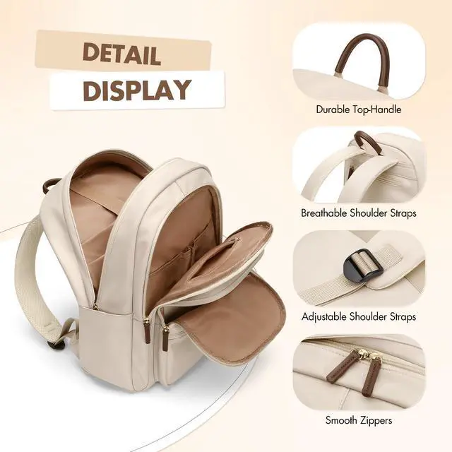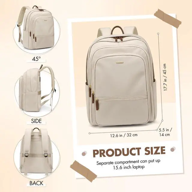 GOLF SUPAGS Backpack for Women Work College Travel Laptop Backpacks Multi-Functional Casual Daypack Teacher Nurse Everyday Bags Fits 15.6 Inch Notebook (Apricot)