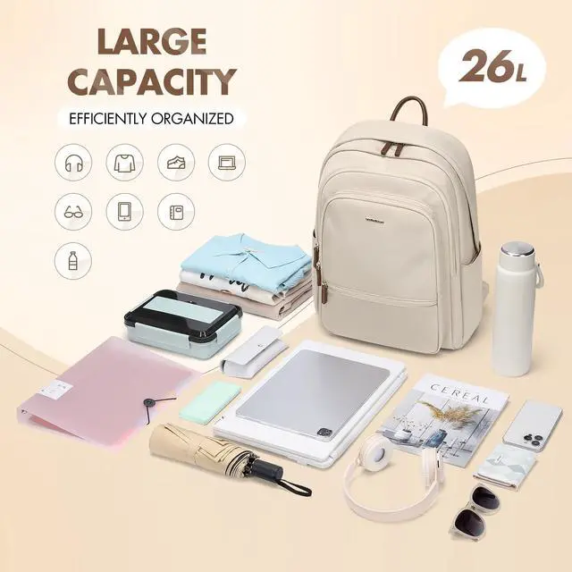 LARGE CAPACITY - Measuring 32 x 45 x 14 cm (12.6 x 17.7 x 5.5 inches), this 26 liters backpack offers ample space for all your essentials. Whether you're heading to work, traveling, or going about your daily activities, there's plenty of room for your laptop, books, lunch box, clothes, and personal items without feeling bulky.