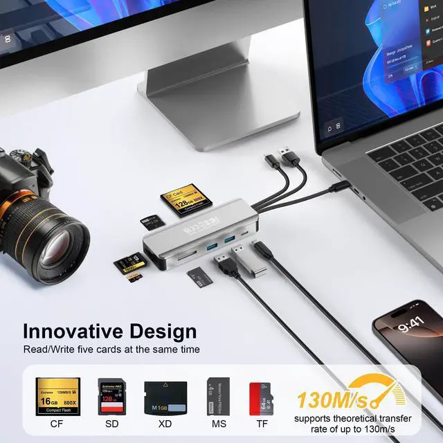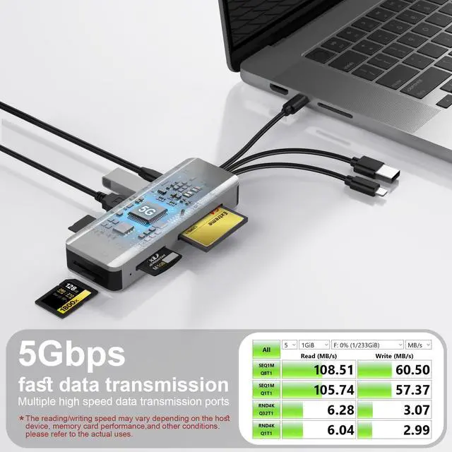 8in1 SD Card Reader,Aluminum Multi Memory Card Carrying Box SD/TF/CF/MS/XD/USB3.0 * 2 Port Card Reader Adapter for Phone/Pad/PC/Laptop/USB C and USB A Devices,No Application Required Plug and Play