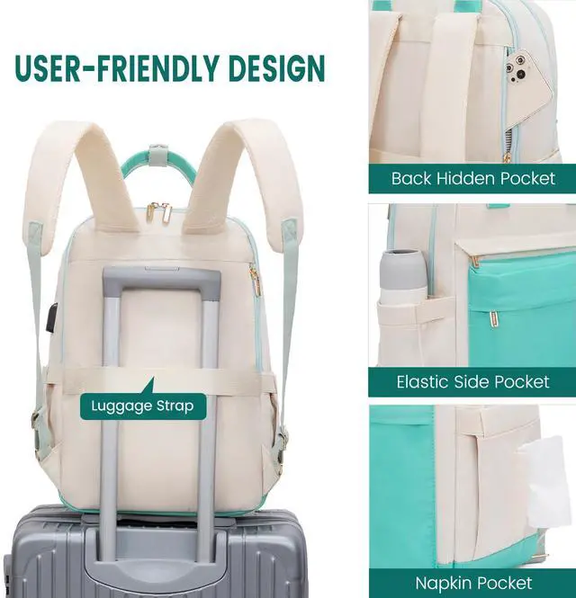ON-THE-GO CONVENIENCE - With a luggage strap on the back, it allows the backpack to securely fit on the handle of a rolling suitcase - ease the burden in your journey. Back hidden pocket sits up against the wearer's body. It's difficult to steal your valuables without you feeling it. Let's travel.