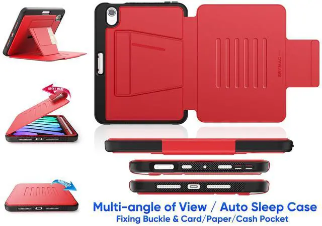 SEYMAC stock Case for iPad mini 7 (A17 Pro) / Mini 6 8.3 '', Strong Magnetic Auto Sleep Shockproof Case with Absorbing Multi-Angles Stand, Pen Holder, Card Slot, Red