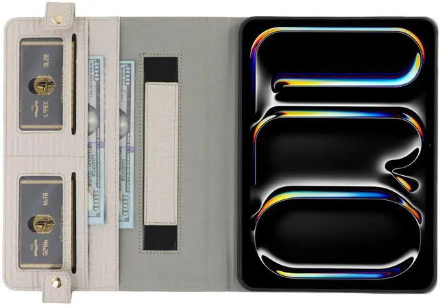 The external pocket and internal multiple slots are designed to store business cards, ID, credit cards, bills, tickets or invoices at any time and any place. Also comes with a pencil holder pocket for your Apple Pencil.