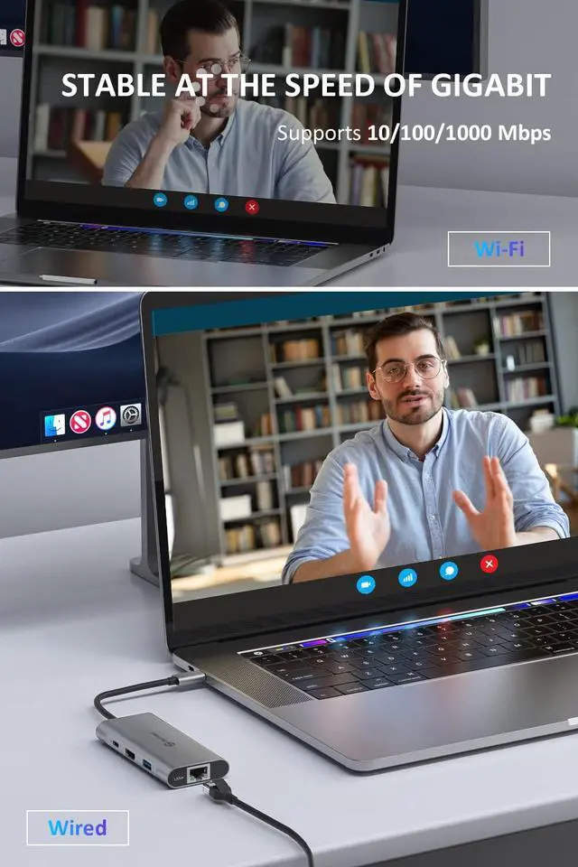 [(Experience Lightning-Fast)] Upgrade your connectivity with our USB-C hub's 5Gbps data transfer and 1000M Ethernet port. With lightning-fast transfer speeds and reliable internet connectivity, you can seamlessly stream movies, download large files, and more.