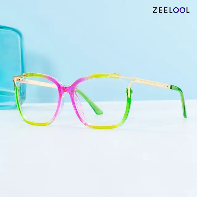 Zeelool Square Blue Light Glasses for Women Chic Multicolor Designer Full Eyeglasses Oversized Non-prescription Eyewear Sidibe JGT261246-09B