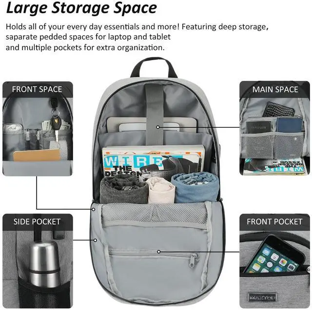 Inner Detachable Cable is convenient for cleaning the back pack, and Inside Side Pocket prevents the mobile power from moving and saves space. (Power Bank Not included) ^^ Ergonomic Design Makes Your Shoulders More Comfortable- Streamlined design on the back of the backpack, thick and soft shoulder strap sponge, and adjustable shoulder straps provide you with maximum back support and relieve shoulder and neck pressure. Even if you pack a lot of things in your laptop backpack, you will not feel a lot of pressure on your shoulders. Ideal as an everyday backpack.