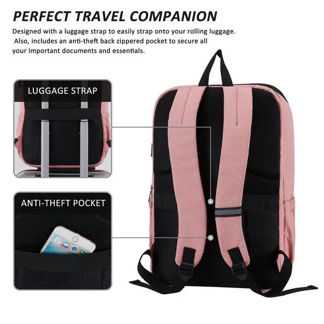 Hidden Anti-Theft Pocket: A luggage strap on the back of the laptop backpack allows you to put the backpack on the handle tube of the suitcase, free your hands and back, and make your travel and business trip more convenient. With a Hidden Anti Theft Pocket on the back of large travel backpack protect your valuable items from thieves. Well made for international airplane travel and day trip. ^^ Updated Quality Material & Multipurpose ---In addition to the previous lightweight, water resistant, durable features, the NEW fabric is more sturdy and not easy to wrinkle. Ensure a secure & long-lasting usage. Newly upgraded backpack has slightly adjusted the internal storage space and added a pen position. Serve you well as office work backpack, bookbag, travel backpack, business laptop backpack and college backpack for adults, men, women.