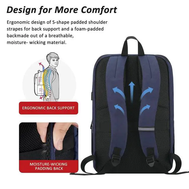 Detachable Cable inside convenient for cleaning the back pack and Inside Side Pocket is design for prevent your Power Bank moving around and same space. (Power Bank Not included) ^^ Comfortable on Your Shoulder and Back with Ergonomic Back Support System --- Breathable airflow back design, thick and soft cushion, to provide you with the greatest back support. Breathable and adjustable ergonomics S-shape padded shoulder straps relieve the stress of shoulder and neck. Even if you pack a lot of things in your backpack, you will not feel a lot of pressure on your shoulders.