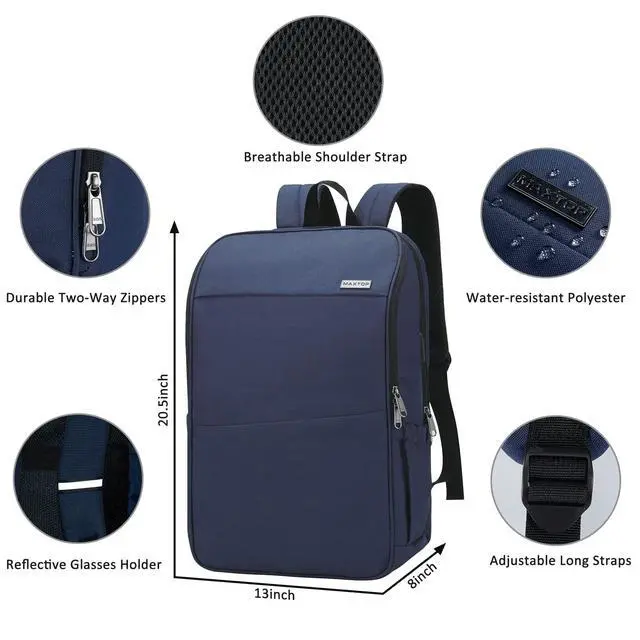 Hidden Anti-Theft Pocket: A luggage strap on the back of the laptop backpack allows you to put the backpack on the handle tube of the suitcase, free your hands and back, and make your travel and business trip more convenient. With a Hidden Anti Theft Pocket on the back of large travel backpack protect your valuable items from thieves. Well made for international airplane travel and day trip. ^^ Updated Quality Material & Multipurpose ---In addition to the previous lightweight, water resistant, durable features, the NEW fabric is more sturdy and not easy to wrinkle. Ensure a secure & long-lasting usage. Newly upgraded backpack has slightly adjusted the internal storage space and added a pen position. Serve you well as office work backpack, bookbag, travel backpack, business laptop backpack and college backpack for adults, men, women.