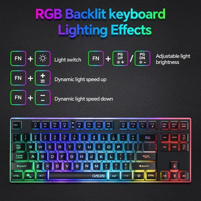 Comfortable & User-Friendly: The 87-key TKL layout not only saves space on your desktop, but also keeps your mouse from touching the keyboard when gaming or working. The PC Gaming Keyboard has 25 anti-ghosting keys an