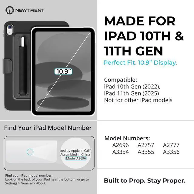 Proper iPad Case for 10th & 11th Gen (10.9) Slim Folio Stand with 3 Viewing Angles + Portrait, Apple Pencil Holder & Pouch, Magnetic Back for Fridge/Board, SoftTouch Cover
