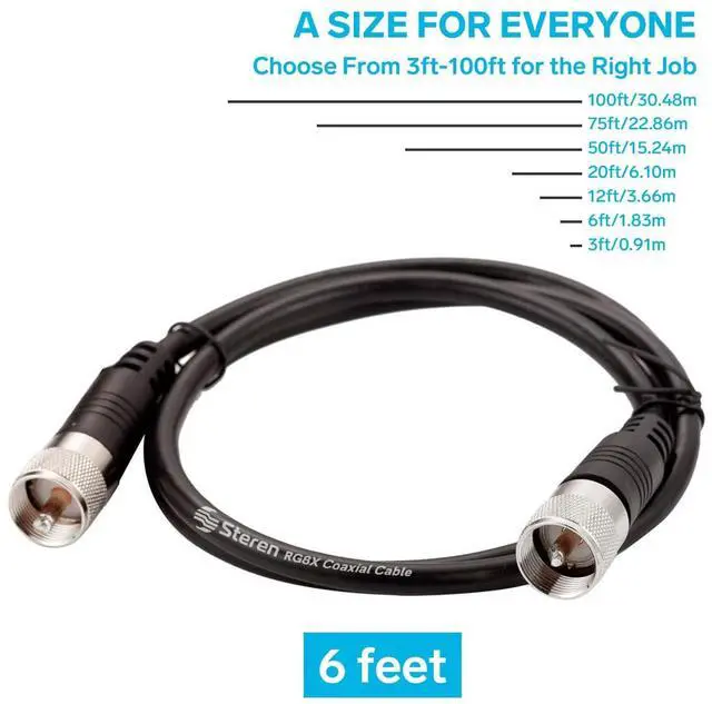 Cable 6 ft: This high-quality, 50 Ohm RG8X coax cable is designed for CB radios, HAM radios, and more. Perfect for users seeking superior performance and minimal signal loss. Ideal for coax cable installations, CB base antenna, HAM radio coax cable, HF antennas, and 1.8 meter antennas. Built to ensure optimal signal quality and durability for all your radio communication needs. ^^ Upgrade to