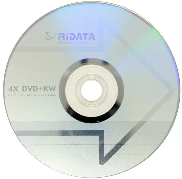 Features: Ridata DVD+RW Disc with Silver Branded Logo Surface. Excellent reading & writing performance. Compatible with most readers and writers. LOW BLER (block error rate) UV and heat resistance.