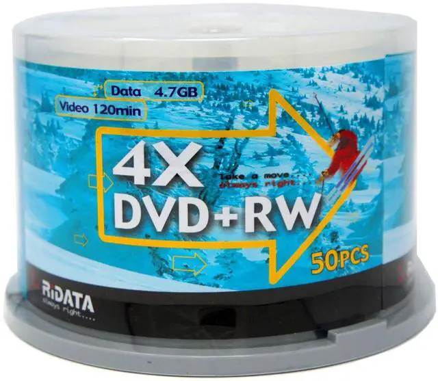 Brand: Ridata. Type: DVD+RW (Rewritable). Part Number: DRW+474-RDCB50.