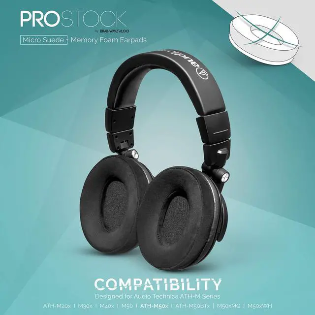Brainwavz ProStock ATH M50X Upgraded Earpads, Improves Comfort & Style Without Changing The Sound - Ear Pad Designed for ATH-M50X M50BTX M20X M30X M40X Headphones, Vegan Leather (Micro Suede)