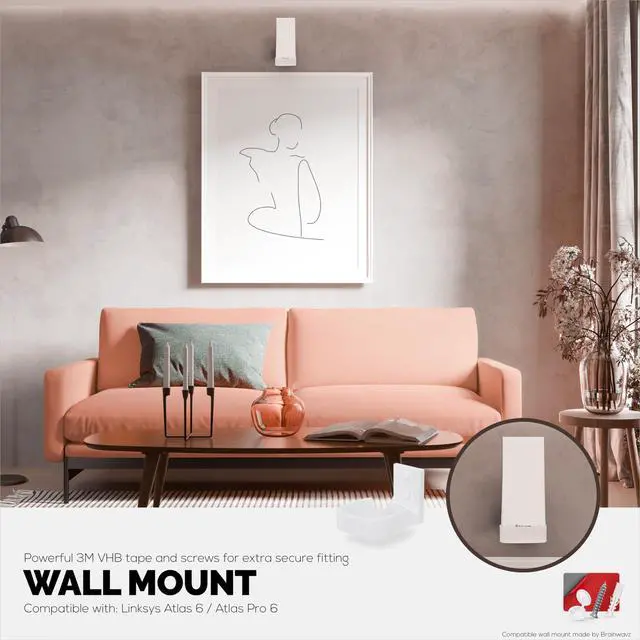 WALL MOUNT FOR BETTER WIFI: Get the most from your mesh router system by placing it higher up on your wall for maximum range and reception. When left on tables, the low level doesnt provide for the ideal situation for your router to reach its full potential. This product is manufactured and designed by Brainwavz, this product is compatible with Linksys Atlas 6 / Atlas Pro 6 WiFi Routers only.