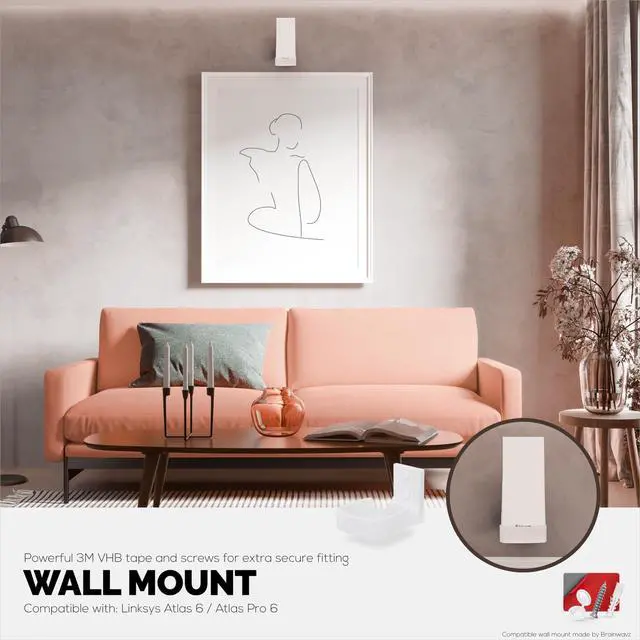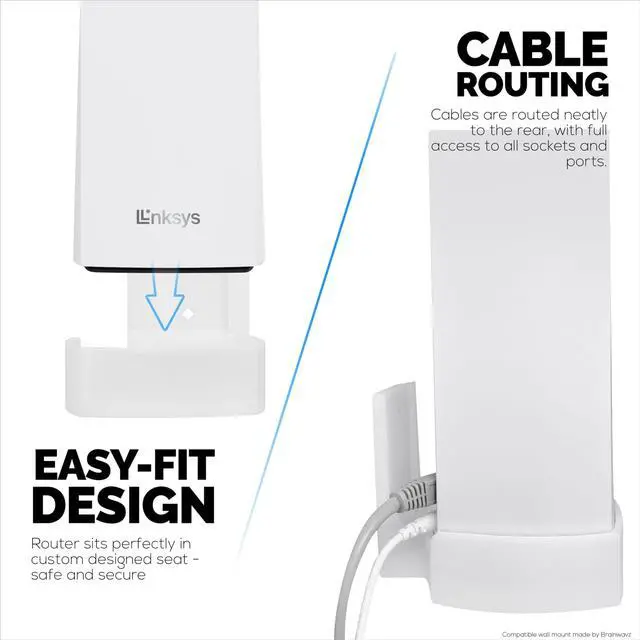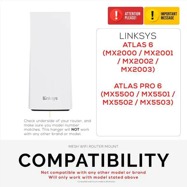 WALL MOUNT FOR BETTER WIFI: Get the most from your mesh router system by placing it higher up on your wall for maximum range and reception. When left on tables, the low level doesnt provide for the ideal situation for your router to reach its full potential. This product is manufactured and designed by Brainwavz, this product is compatible with Linksys Atlas 6 / Atlas Pro 6 WiFi Routers only.