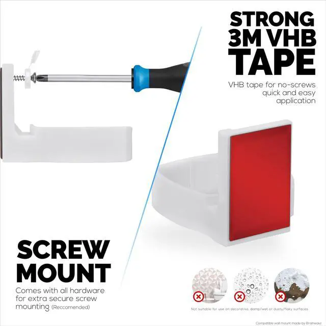 ^^ SCREW MOUNT OPTION: All hardware is included so the mount can be screwed into walls and wood surfaces. Includes screws, wall plugs and screw caps ^^